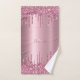 Monogram Metallic Pink Dripping Glitter Modern Bath Towel Set.