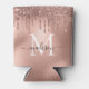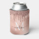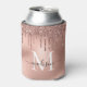 Monogram Metallic Rose Gold Pink Glitter Drips Can Cooler