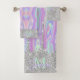 Monogram Metallic Silver Glitter Drip & Iridescent Bath Towel Set