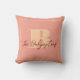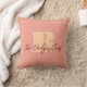 Stylish chic unique square throw pillow personalised customised with bold initial letter and calligraphy handwritten script elegant family name. Refined boho bohemian nuances of peach , yellow ,brown and simple minimalist minimal design. Trendy and timeless at the same time home decor accent, for your living room or as a thoughtful custom gift for newlyweds, new homeowners, as housewarming gift. Very affordable also, under 50 dollars the small size version.