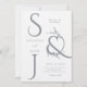 Monogram Minimalist White and Silver Modern Wedding Invitation