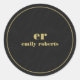 Monogram Minimalistic Black Linen Gold Typography Classic Round Sticker