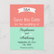 Monogram Mint and Coral Colour Block Save the Date Announcement Postcard