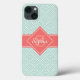 Monogram Mint Coral Name Diamond Pattern Case-Mate iPhone Case