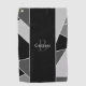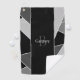 Background of cool abstract design with large black stripe on centre and custom monogram and name overlayed in white and grey. Makes a great gift idea for men who love golfing!
