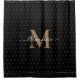 Monogram Modern Black White Gold Elegant Script Shower Curtain