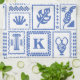 Monogram Modern Blue White Abstract Pattern Tea Towel