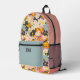 Monogram Modern Colourful Floral Girls School Printed Backpack