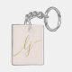 Monogram Modern Minimal Elegant Blush Gold Script Key Ring