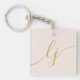Monogram Modern Minimal Elegant Blush Gold keychain White Script Calligraphy Initials Keychain