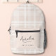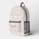Monogram Modern Minimalist Blush Pink Script Plaid Printed Backpack