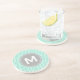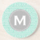 Cute, modern, geometric, girly Greek key pattern in mint green and white with a grey circle label frame for your custom monogram initial letter. A cool, feminine, elegant pattern print with a personal touch that will make a trendy and unique gift for girls / women.