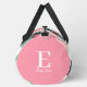 Monogram Modern Pink Flamingo Geometric Girly Custom Personalised Name Gym Bag Duffel bag features modern tropical pink flamingos on a geometric background with your custom monogram and personalised name on the side. Perfect as gifts for birthday, Christmas and holidays. Created by Evco Studio www.zazzle.com/store/evcostudio