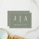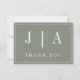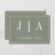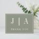 Monogram Modern Simple Sage Green White Wedding Thank You Card