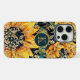 Monogram Modern Sunflower Glitter Personalised iPhone 15 Pro Max Case Phone Case features a sunflower pattern with faux gold glitter and personalised with your custom monogram in the centre. Perfect gift for her for Christmas, birthday, Mother's Day and more whether girlfriend, sister, mother, friends. Created by Evco Studio www.zazzle.com/store/evcostudio