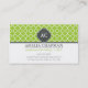 MONOGRAM morrocan tile pattern lime green grey Business Card
