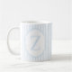 This elegant monogram mug features a soft blue and white striped design with the letter Z in the center.
