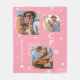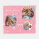 Monogram Name 3 Photo Collage Trendy Modern Fleece Blanket features a photo collage of three of your favorite photos with your personalized name and monogram in elegant white script on a pink background. Personalize by editing the text in the text boxes provided. Perfect for birthday, Christmas, Mother's Day, Father's Day, sister, cousins, best friends and more. PHOTO TIP: center your photos before uploading to Zazzle. Designed by ©Evco Studio www.zazzle.com/store/evcostudio