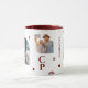 Monogram Name 3 Photo Collage Trendy Modern Coffee Mug features a photo collage of three of your favorite photos with your personalized name and monogram in elegant burgundy script. Personalize by editing the text in the text boxes provided. Perfect for birthday, Christmas, Mother's Day, Father's Day, best friends and more. PHOTO TIP: center your photos before uploading to Zazzle. Designed by ©Evco Studio www.zazzle.com/store/evcostudio
