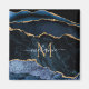 Monogram Name Agate Navy Blue Gold Gemstone Marble Magnet