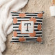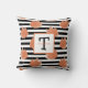 Monogram Name and black and white Stripes with orange Watercolor Leaves. Change the initial & last name.