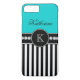 Monogram Name Aqua Black Striped Pattern Case-Mate iPhone Case