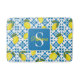 Monogram Name Blue French Tile Lemon Pattern Bath Mat