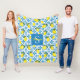 Monogram Name Blue French Tile Lemon Pattern Fleece Blanket