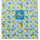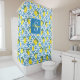 Monogram Name Blue French Tile Lemon Pattern Shower Curtain