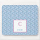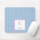 Monogram Name Blue Hearts & White Dots Pattern Mouse Mat