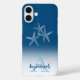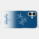 The design features a blue ombre case and the custom name and initial letter monogram sit in the lower white area. The three white starfish sit up top in the template text. Personalise the text, remove one or all the text or click customise to select a font style, size, and colour you prefer.