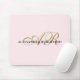 Elegant refined feminine chic personalizable customisable with monogram, initial letters and name mousepad. Soft stylish pastel blush pink background, elegant gold calligraphy script handwritten initial letters, and classy black typography for the name. Beautiful and timeless, for you or as a thoughtful custom gift for her. Useful computer or laptop accessory and very affordable, a gift under 50 dollars, even under 20 dollars.
