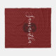 Monogram Name Burgundy Grey Herringbone Pattern Fleece Blanket