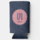 Dark blue denim print and classic vintage red and white buffalo check circle frame covers this trendy Slim Seltzer can cooler with stylish skinny initials and modern name in dark blue. Easily change name and initials using the Template provided. Fits 12oz slim cans. Easy to clean durable fabric will last for years and keep your drink cold. Collapsible foam material makes for easy storage. See "About" for more information.