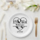 Heart Mr. and Mrs. monogram name date wedding paper plates. Also great for anniversary parties.