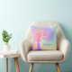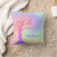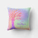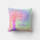 This girly pillow is decorated with a tree and a background in rainbow colours with faux sparkling stars.