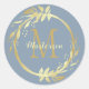 Monogram Name Gold Dusty Blue Christmas Wreath Classic Round Sticker