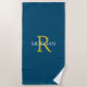 Monogram & Name, Gold & White Text, Ocean Blue Beach Towel