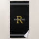 Monogram/Name Gold/Wht Text Wht Stripes, Black Beach Towel