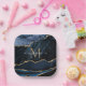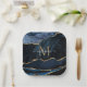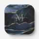 Monogram Name Navy Blue Gold Marble Paper Plates
