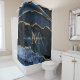 Monogram Name Navy Blue Gold Marble Shower Curtain