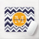 Monogram Name Navy Blue White Chevron Pattern Mouse Mat