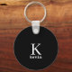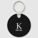 Monogram name personalised black elegant modern key ring