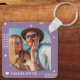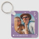 Monogram Name Photo Trendy Simple Modern Keychain features one of your favourite photos with your personalised name and monogram in elegant white script on a purple background. Personalise by editing the text in the text boxes provided. Perfect for birthday, Christmas, Mother's Day, Father's Day, sister, cousins, best friends and more. PHOTO TIP: centre your photo before uploading to Zazzle. Designed by ©Evco Studio www.zazzle.com/store/evcostudio