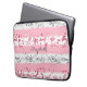 Monogram Name Pink White Grey Glitter Trendy Laptop Sleeve