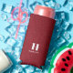Monogram Name Red Denim Print Slim Seltzer Can Cooler