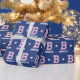 Elevate your gift-giving with monogrammed wrapping paper! This sports jersey-style pattern features a retro block-style font, stars, and is personalised with a monogram initial and the recipient's name. You can also customise the background colour by using the design editor tool. A cute design that would suit many occasions, including Christmas, birthdays, graduations and more — perfect for all ages, from kids and teens to family and friends! This seamless gift wrap is available with a matte or glossy finish. Printed colours: pink, dark blue navy and white.