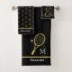 Monogram Name Tennis Racket Ball Gold Black Bath Towel Set