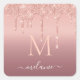 Monogram Name Text Rose Gold Blush Glitter Sparkle Square Sticker