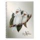 Monogram Name White Birds Cockatoo Green Leaves notebook. Unique, beautiful, stylish design. Easy to be personalized. Font style, size and colors can be changed. Matching items available.
